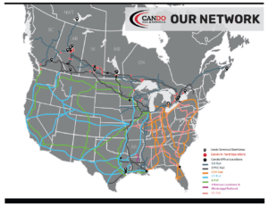 Cando’s network includes 15 terminals, 1 short line, and rail operations at more than 50 customer locations.